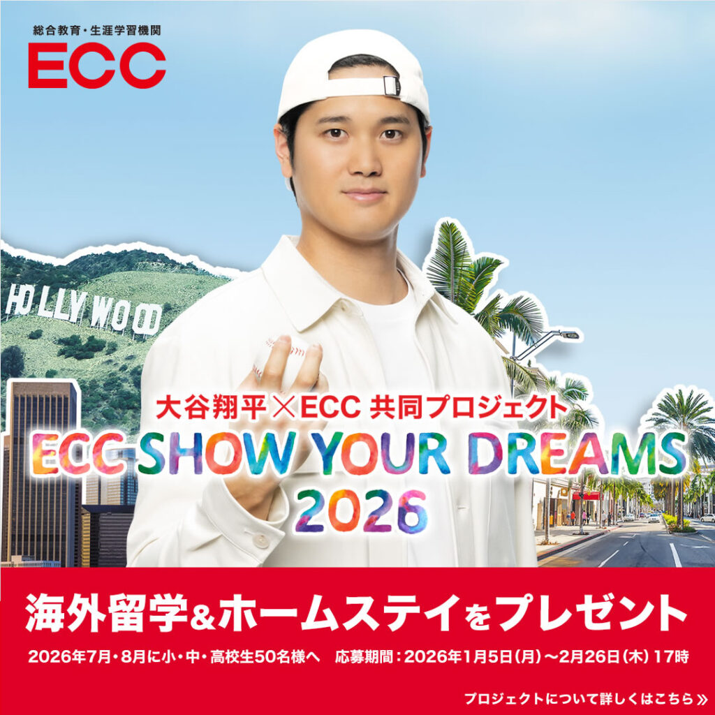 大谷翔平選手とECCの共同プロジェクト、『ECC SHOW YOUR DREAMS 2026』の開催が決定しました。